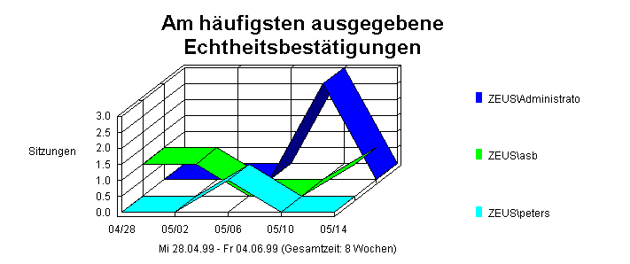 Dieser Abschnitt identifiziert die IP-Adressen und die relativen Aktivitätsfrequenzen der aktivsten Besucher auf der Web-Site. Wenn Sie keine WebTrends-Cookies zur Protokollierung von Sitzungen verwenden, kann WebTrends zwischen Hits verschiedener Anwender mit derselben IP-Adresse nicht unterscheiden.