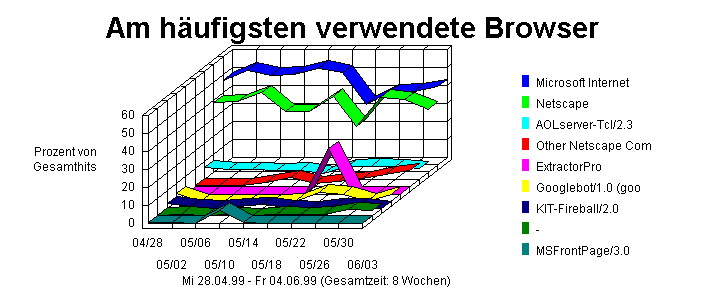 Dieser Abschnitt identifiziert die polulärsten Browser, die von Besuchern zu Ihrer Site verwendet wurden. Diese Informationen werden nur dann angezeigt, wenn Ihr Server Browser/Plattform-Informationen protokolliert.