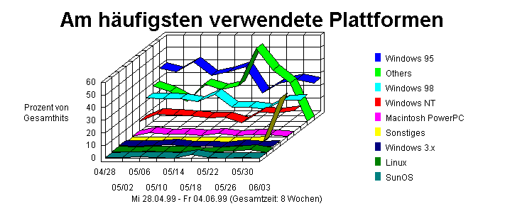 Dieser Abschnitt zeigt die Betriebsysteme, die von den Besuchern zu Ihrer Web-Site am häufigsten benutzt wurden. Diese Informationen werden nur dann angezeigt, wenn Ihr Server Browser/Plattform-Informationen protokolliert.