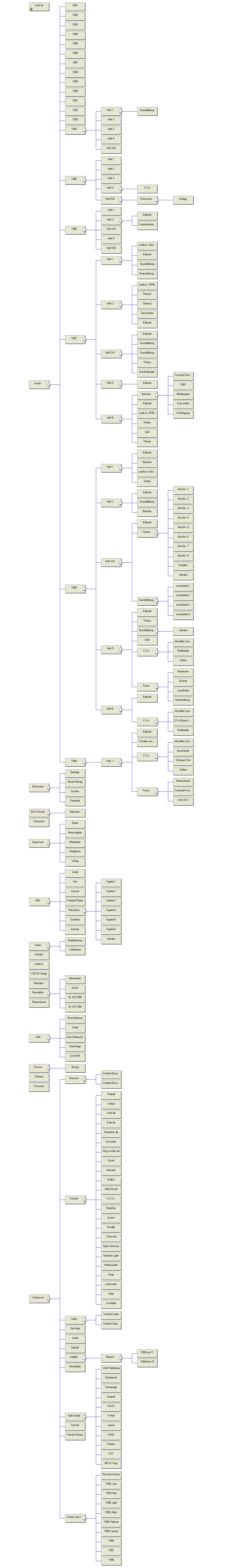 Site Maps vom 16. Juli 1999Visuelle Darstellung der Struktur des LOG IN-Servers als Vollständige Site Map oder Strukturdarstellung. Vollständige Site MapDurch Anklicken der Abbildung können Sie eine vergrößerte Darstellung aufrufen GIF, 997x6892x8, ca. 87kB). StrukturdarstellungDurch Anklicken der Abbildung können Sie eine vergrößerte Darstellung aufrufen GIF, 1013x590x8a. 13kB). Erstellt mit HyperSnap-DX Pro 3.42.00 (http://www.hyperionics.com/) und der »Navigation«-Ansicht von Microsoft FrontPage 3.0.2.1706 (http://www.microsoft.com/frontpage/). |